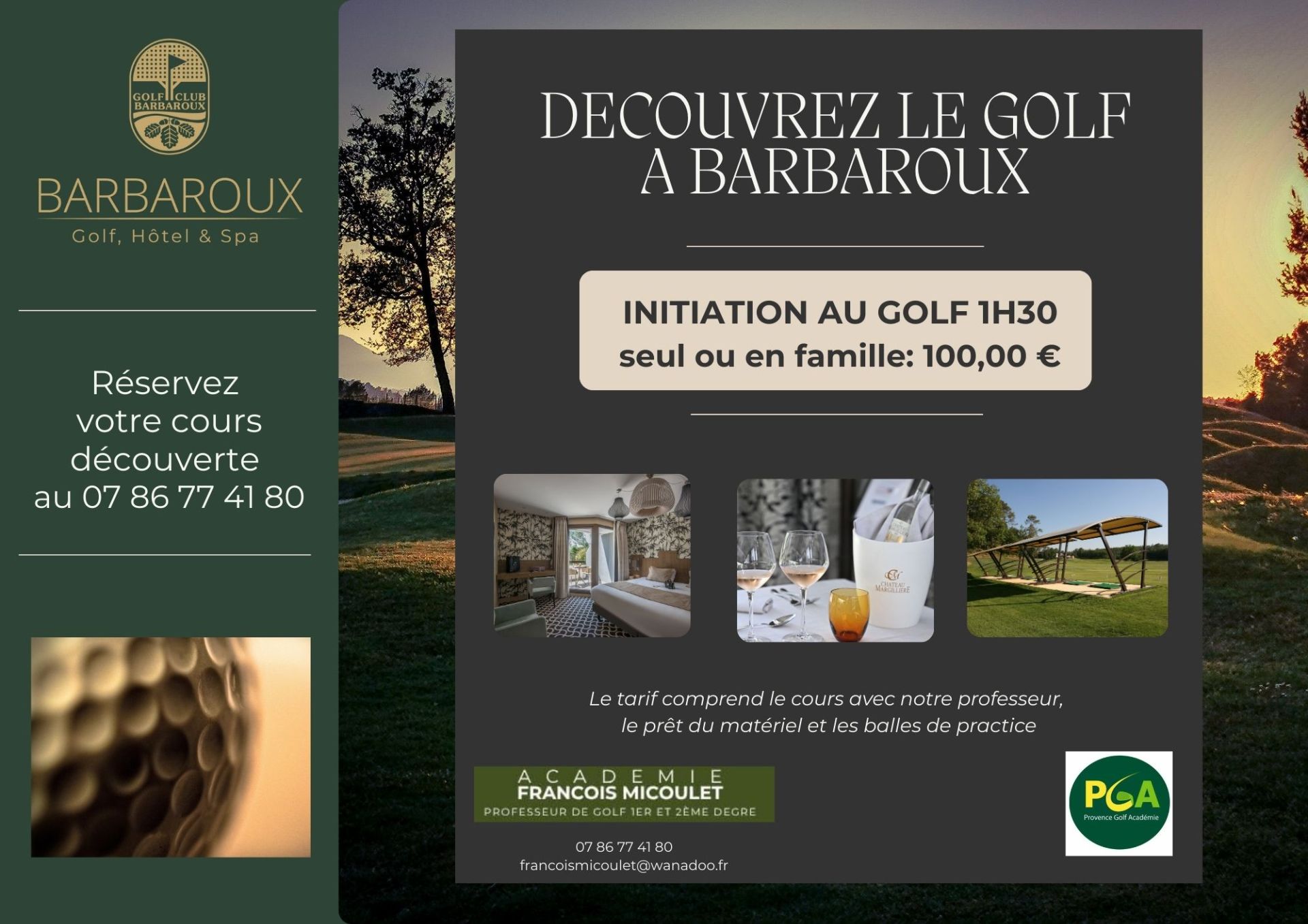 Bienvenue à l’Académie Francois Micoulet au Golf de Barbaroux, la PGA est un lieu d’excellence dédié à l’apprentissage et à la progression de tous les golfeurs, du débutant curieux au joueur confirmé en quête de performance.