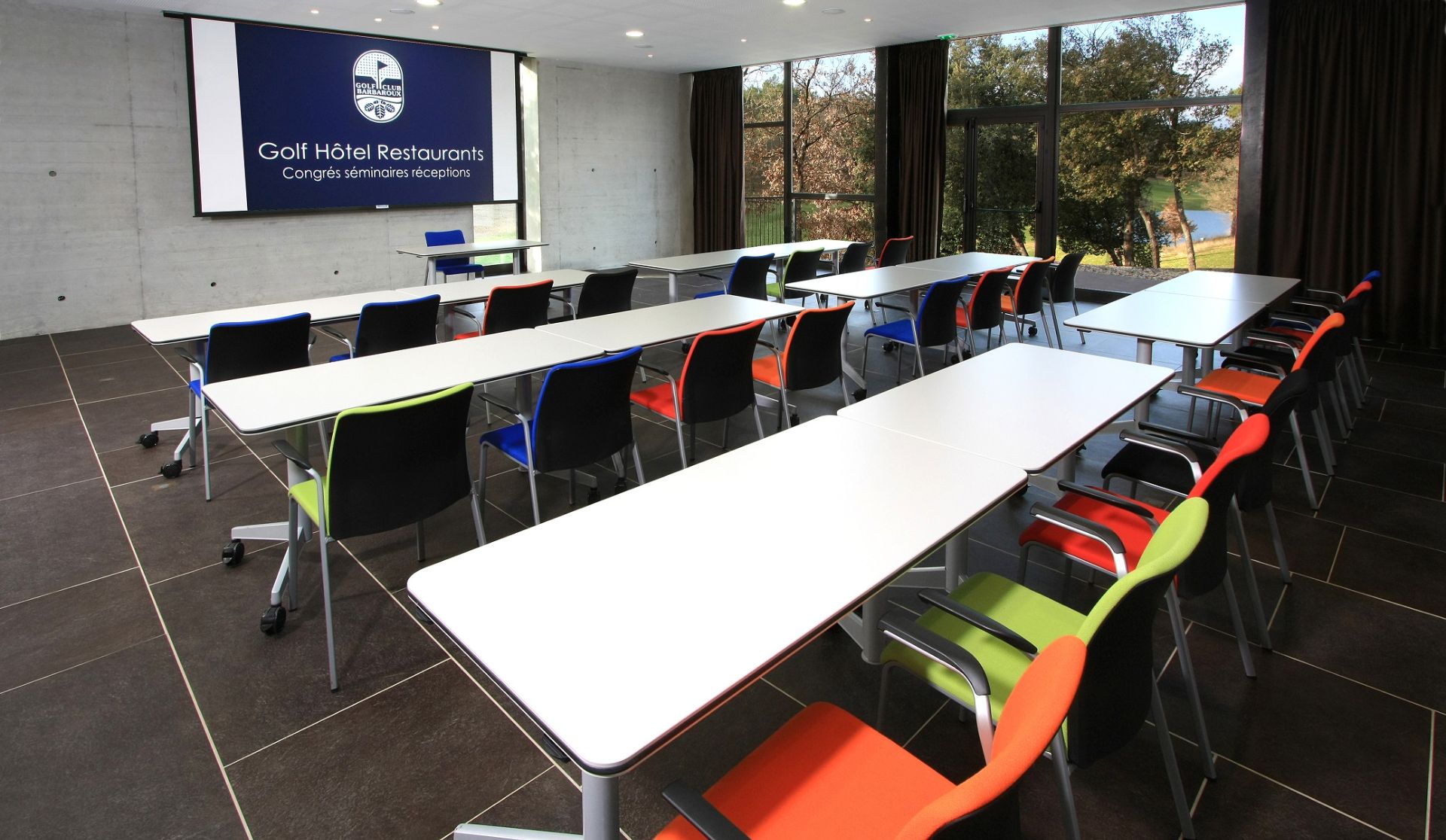 Salles entièrement équipées de 100m² chacune pouvant accueillir jusqu'à 60 personnes en configuration théâtre.( minimum groupe de 20 pers.)