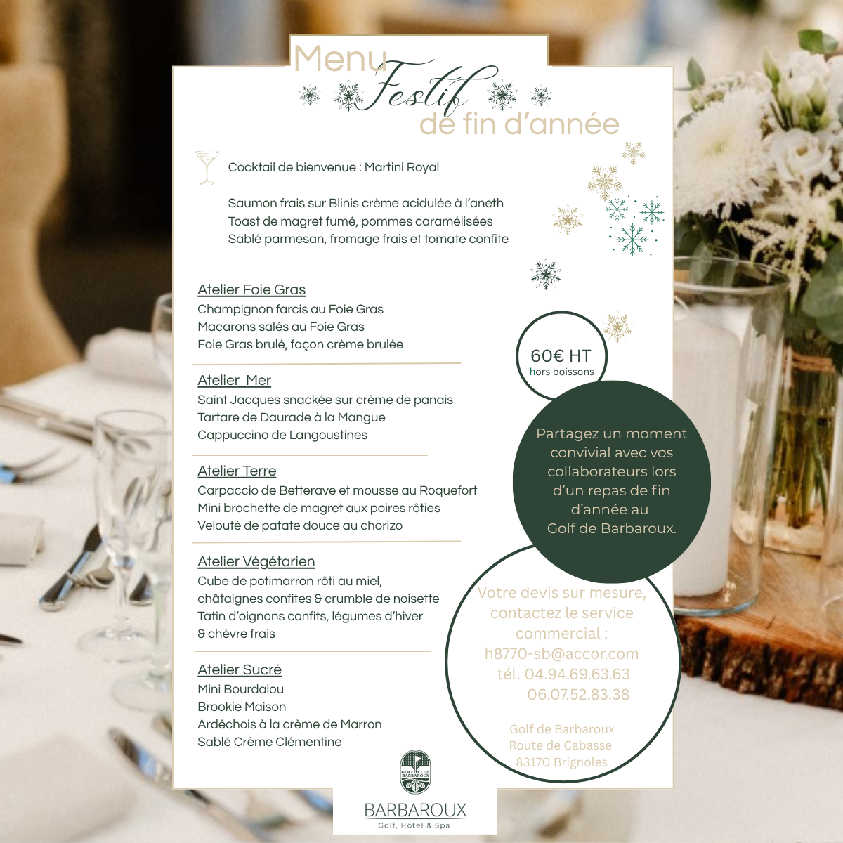* Notre Formule Repas de Fin d'Année à 60.00€HT/pers
